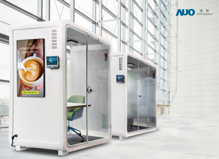 AUO Display Plus showcases Smart Capsule Office Solution for business professionals to serve as their independent work and meeting space, providing users a quiet environment free from disturbance.