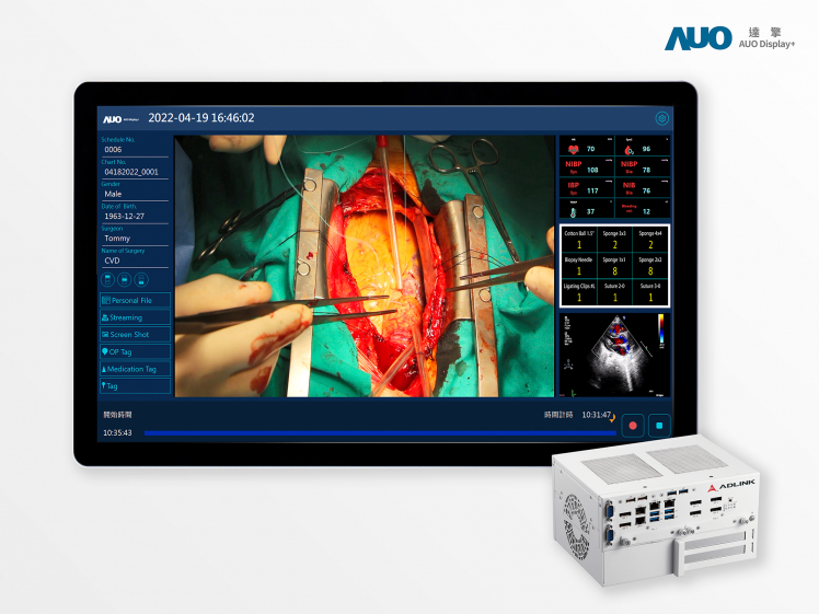 AUO Display Plus, ADLINK and imedtac jointly showcase the Smart Operating Room Dashboard Solution to integrate multiple patient information and surgical images and deliver smoother surgical workflows.