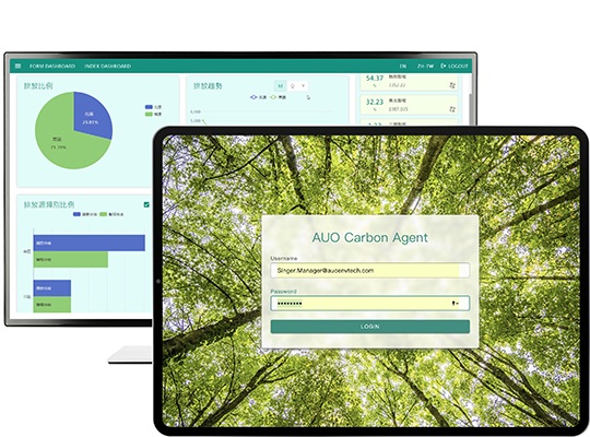 依循 ISO 國際標準建置出符合國際標準的全方位碳管理平臺 (AUO Carbon Agent),其中溫室氣體盤查模組可協助客戶將組織、LEYU官網與供應鏈的碳排放源數據,透過系統內建的系數資料庫自動計算出碳排量,提升整體盤查作業的效率,并以此擬定長期減碳策略,達到低碳轉型、凈零碳排的目標。