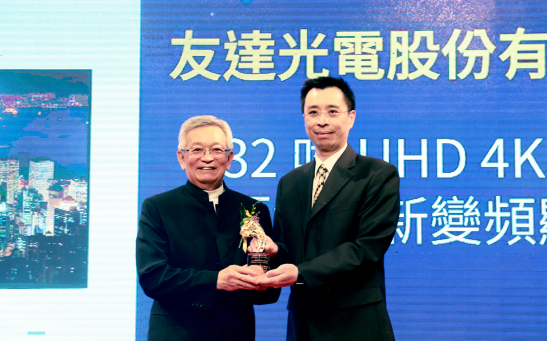 友達榮獲 2019 年中科優(yōu)良廠商創(chuàng)新產品獎,由友達產品開發(fā)總部副總經理洪泓杰 (右) 代表領獎